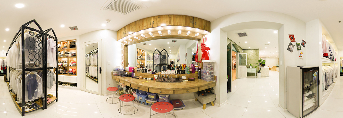 通过全景展示即可在线浏览礼服款式及订制,线下实体店体验试衣,